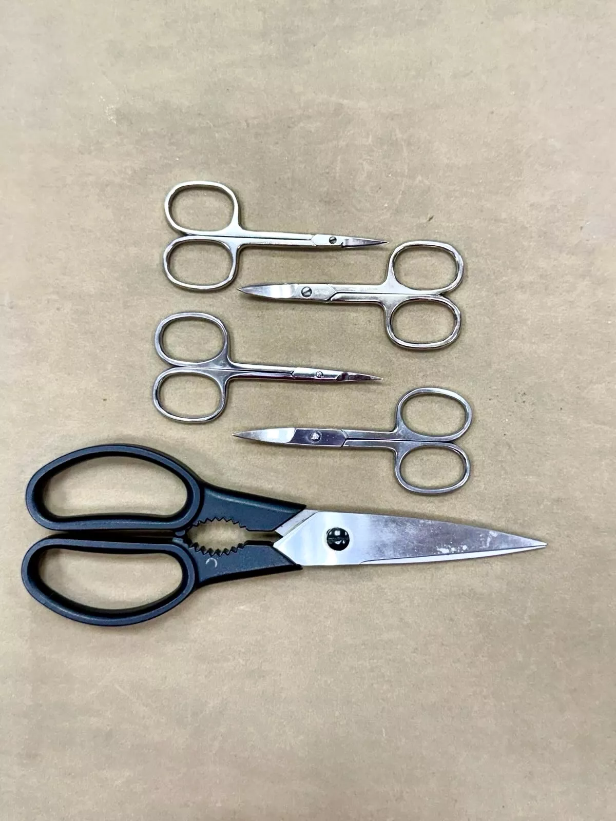 Na některých fotkách u nás najdete i nůžky a nástroje tak, jak nám je lidé nosí – často ještě před broušením. Po nabroušení je ostří vždy perfektní, proto nefotíme každý kus zvlášť. Výsledek je u všech stejný: dokonale ostré nůžky připravené k práci.