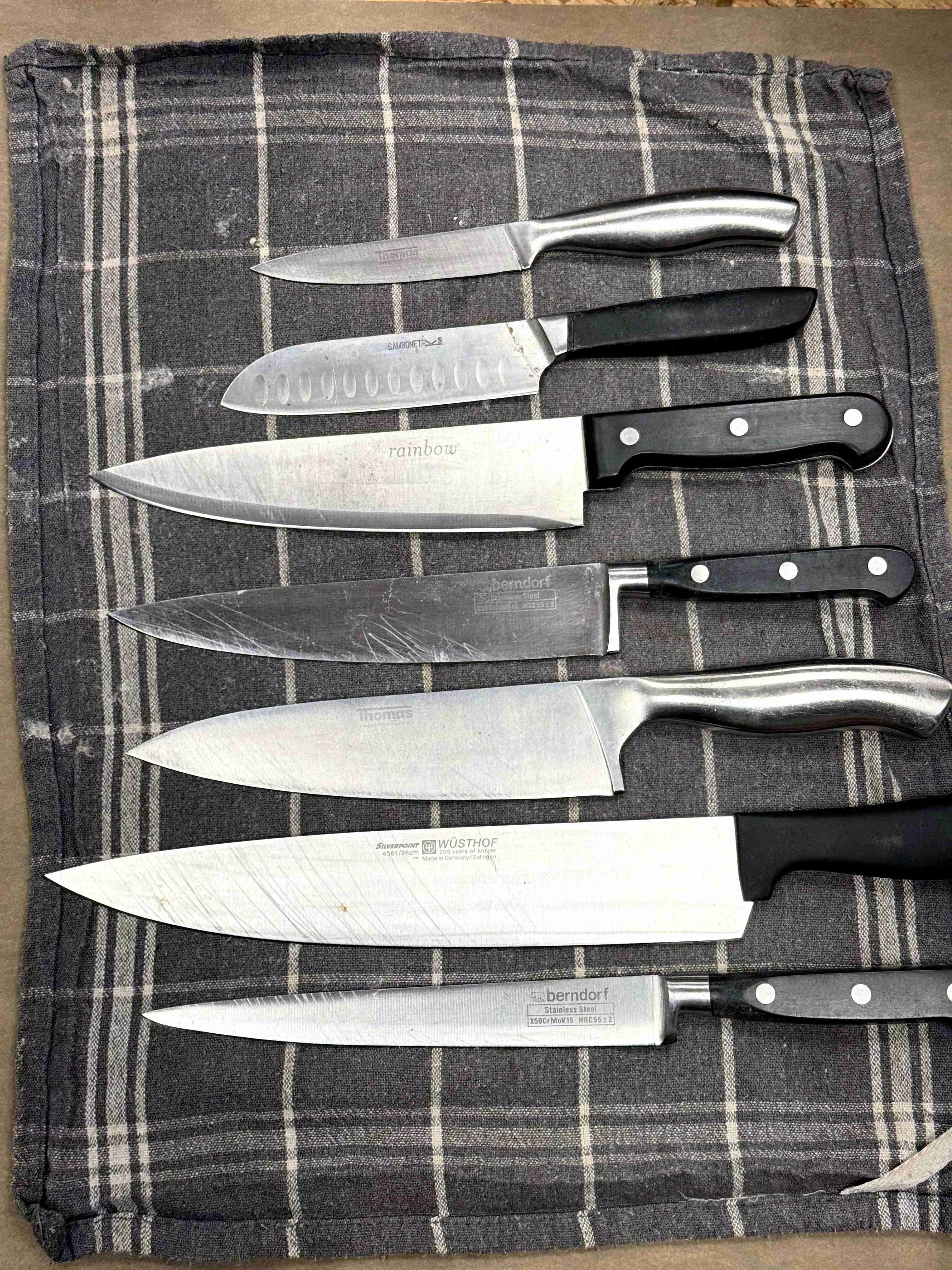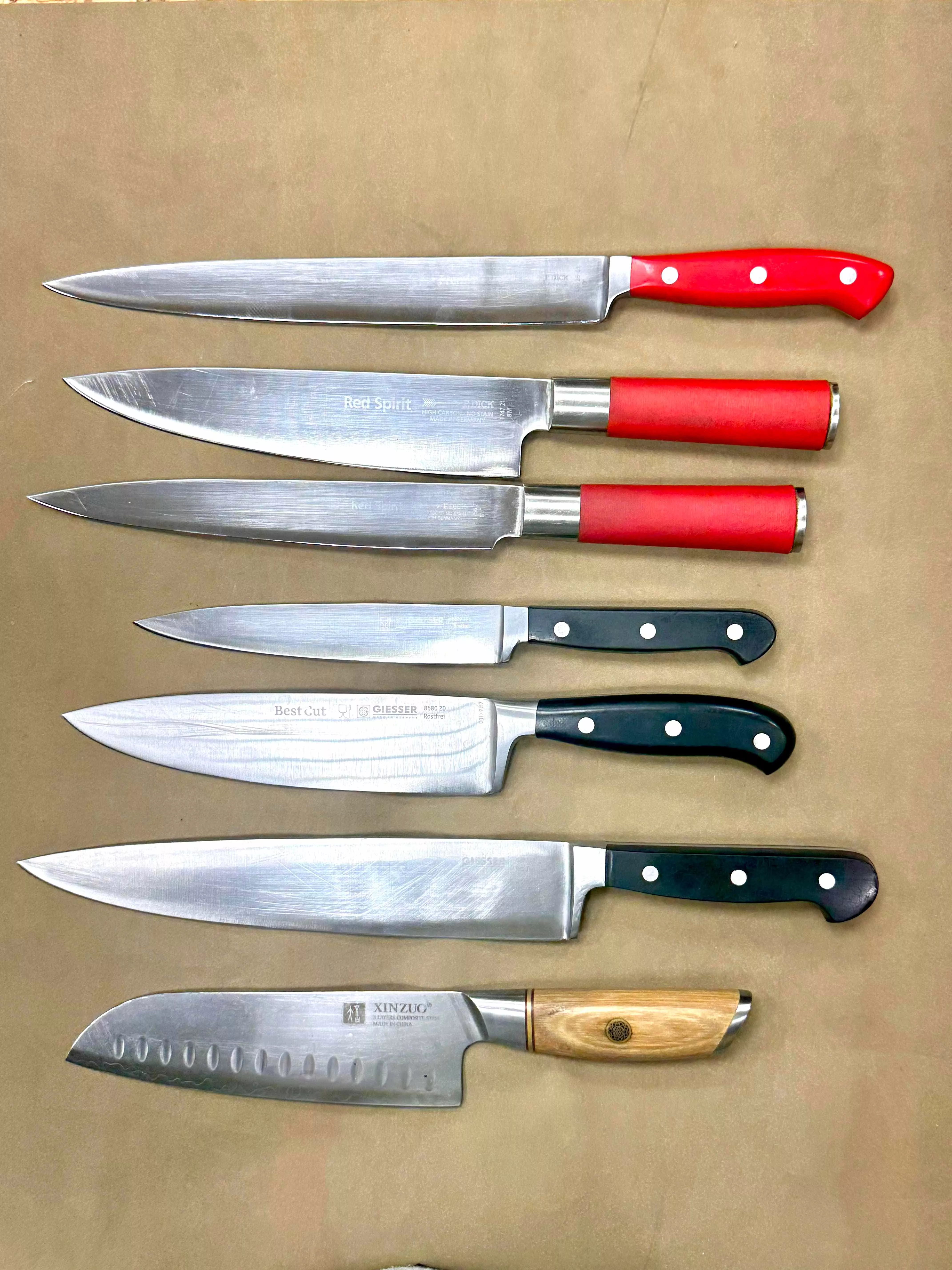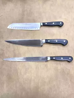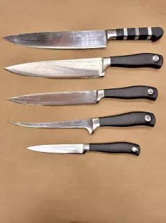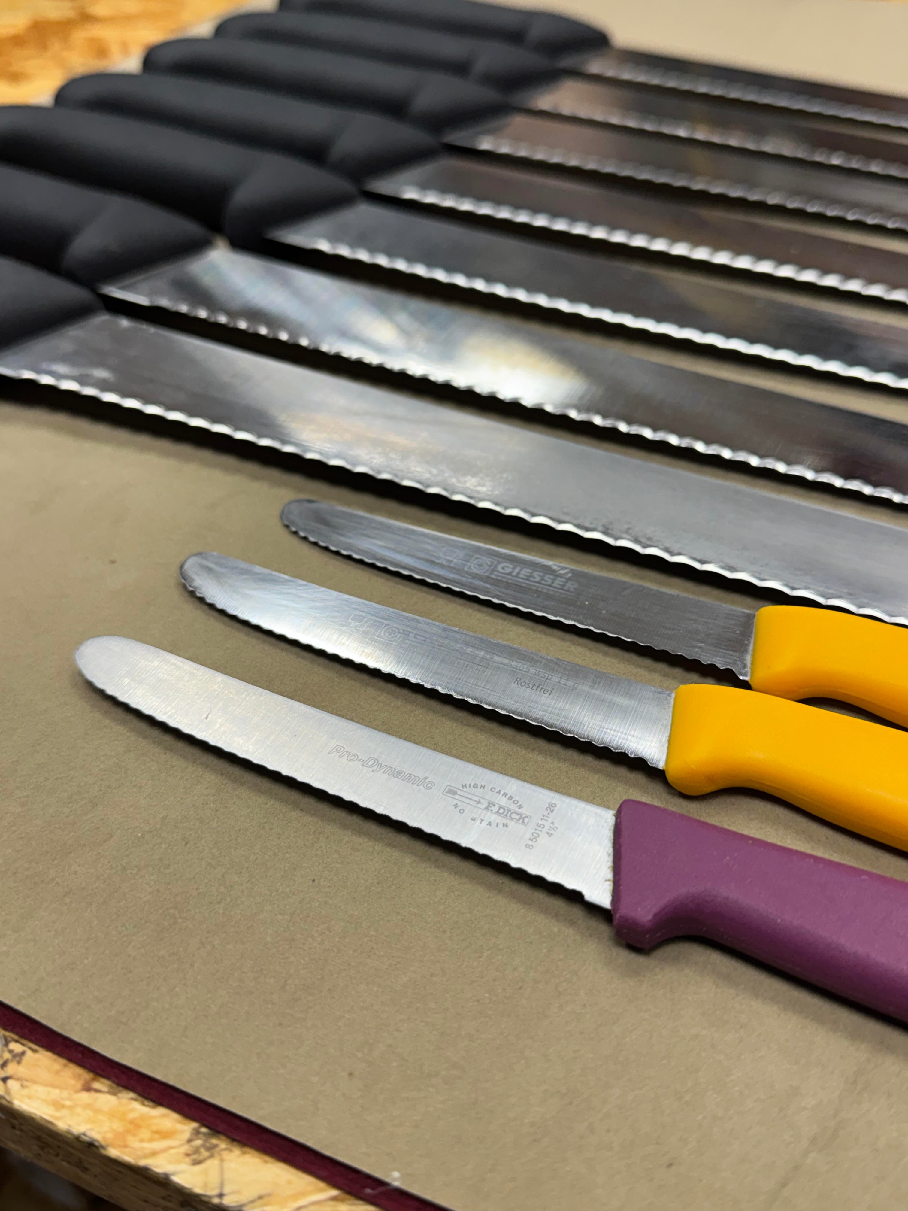 Poznámka: Fotografie v galerii mohou zobrazovat nože před servisem. Po našem zásahu bude ostří zrcadlově lesklé a dokonale hladké.