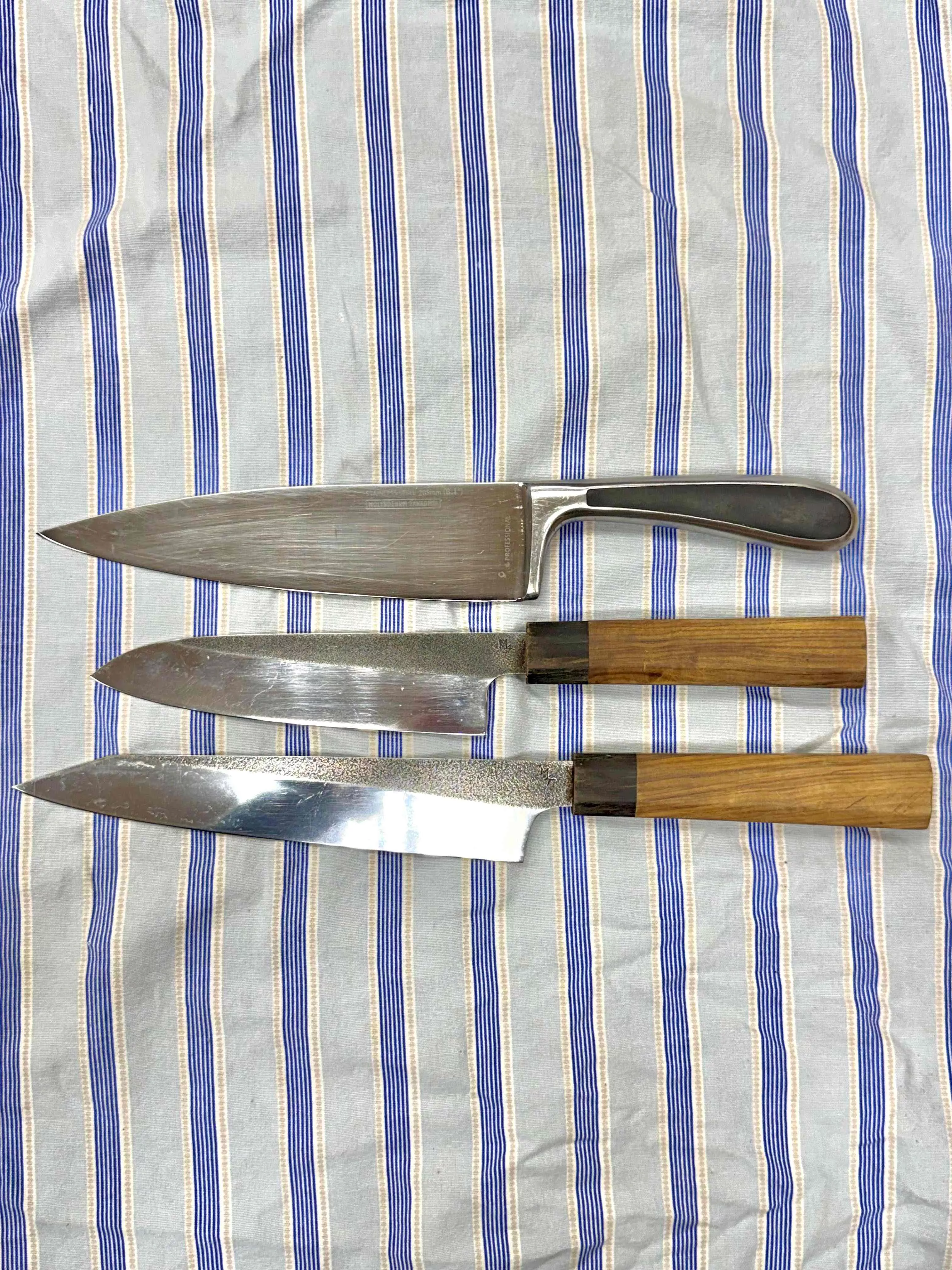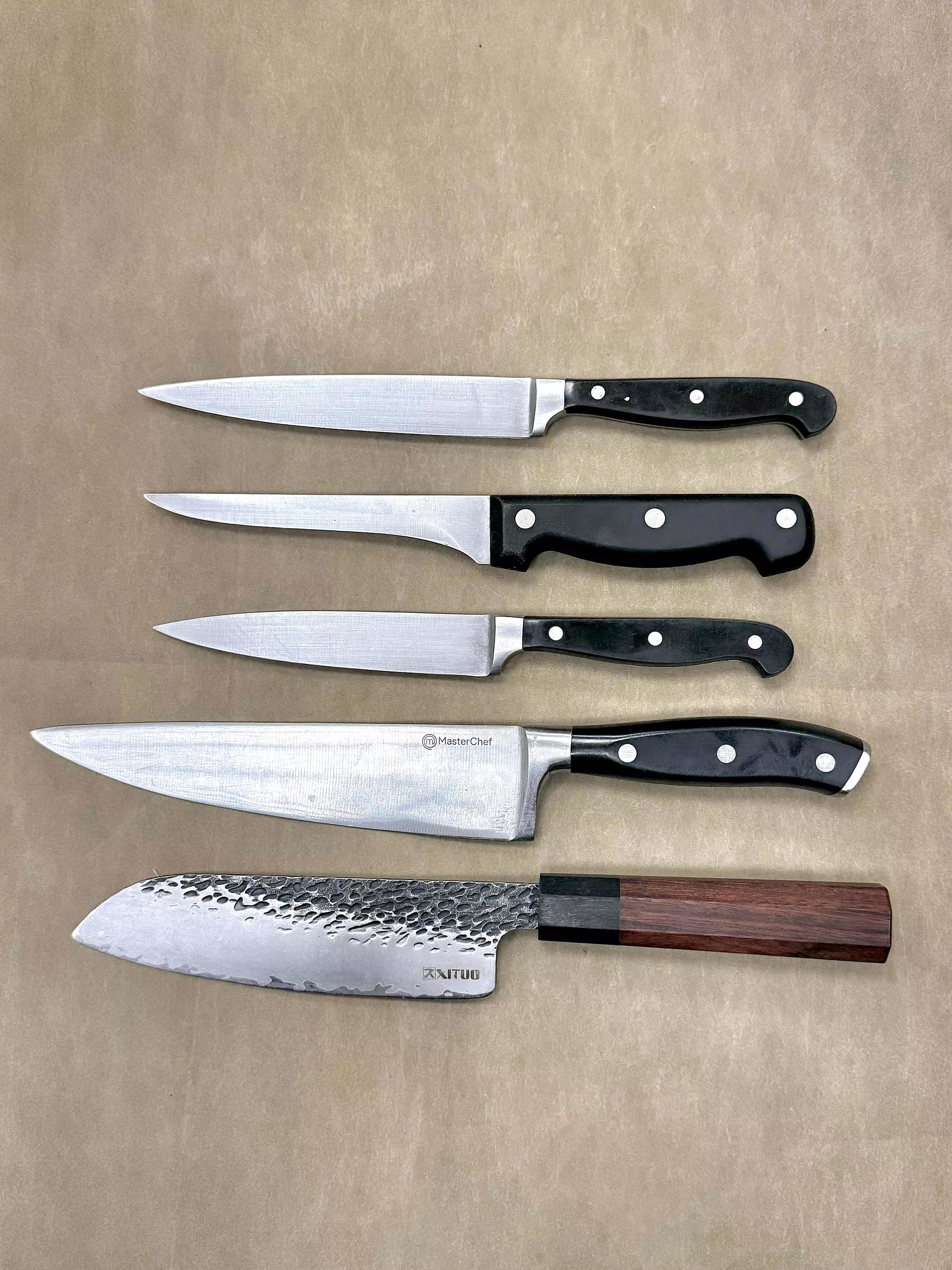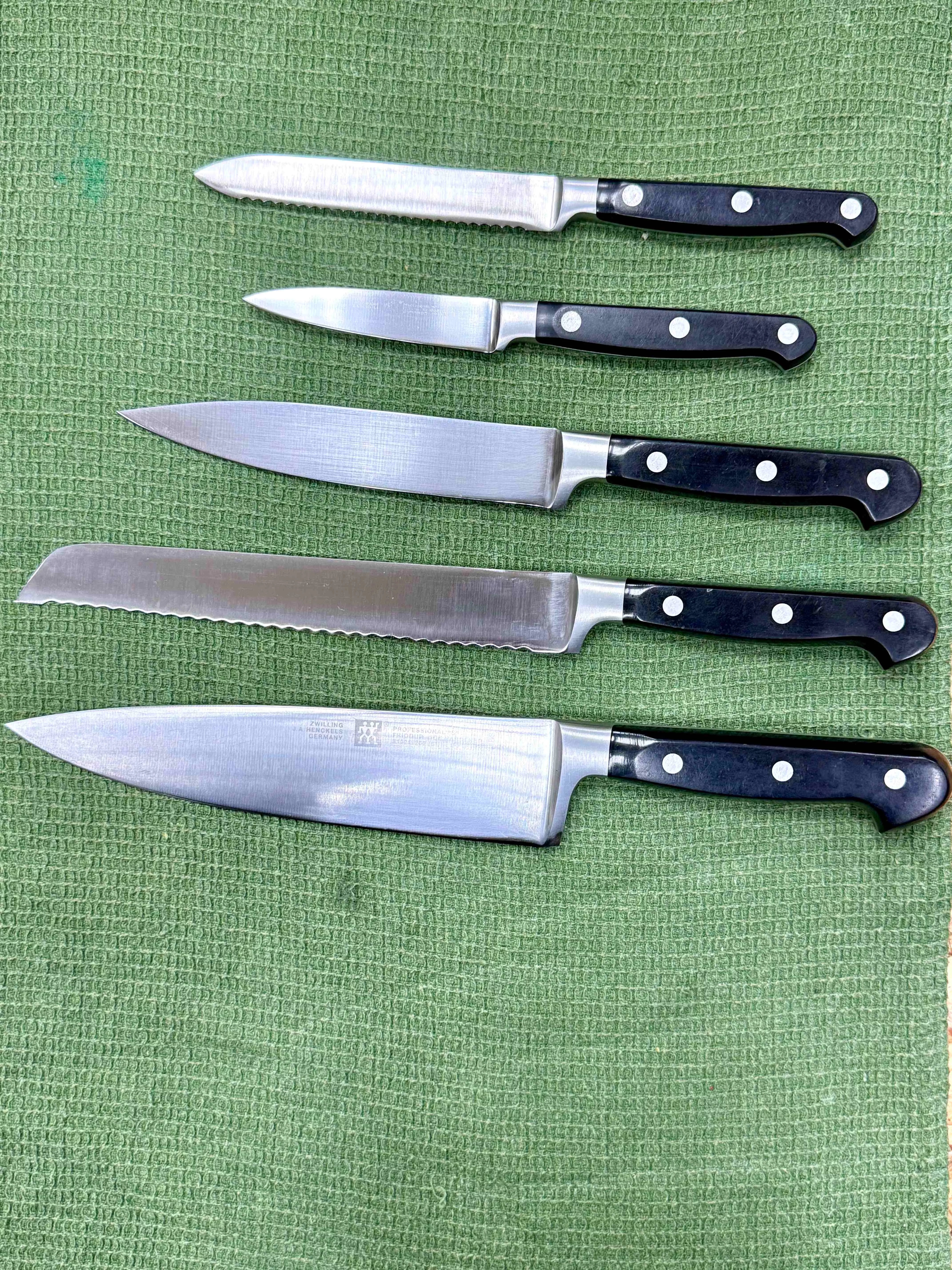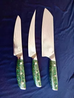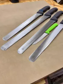 Poznámka: Fotografie v galerii mohou zobrazovat nože před servisem. Po našem zásahu bude ostří zrcadlově lesklé a dokonale hladké.