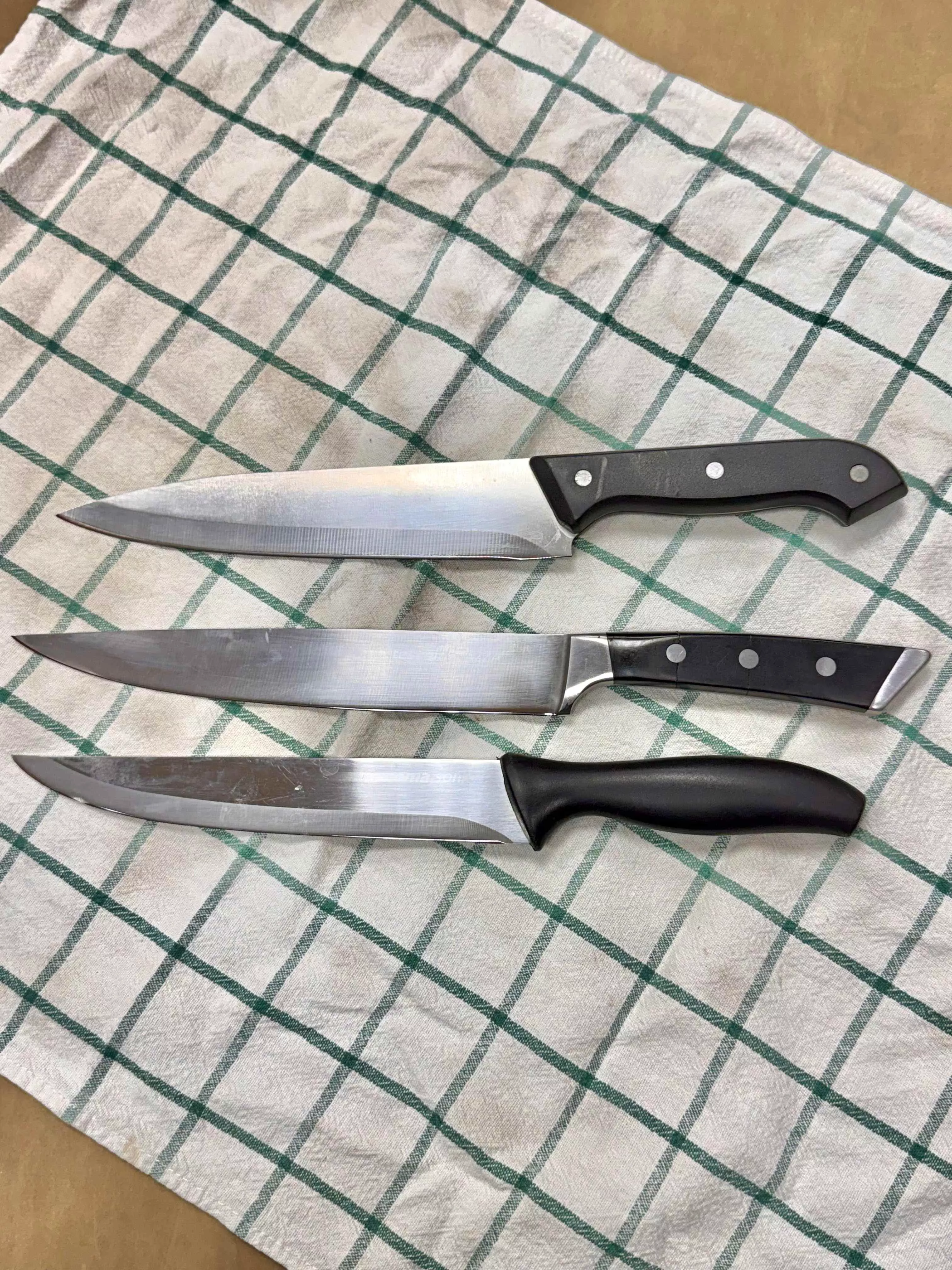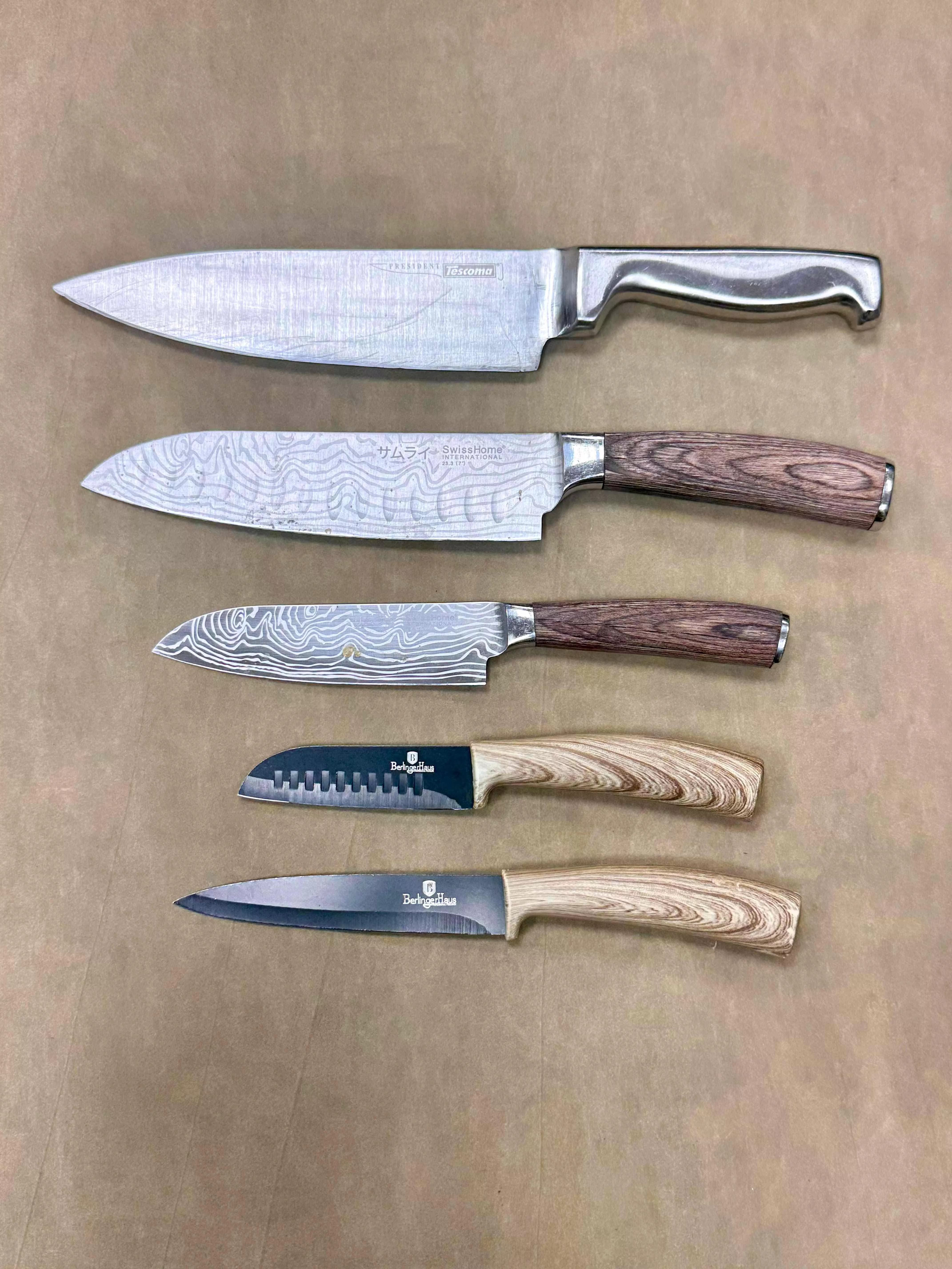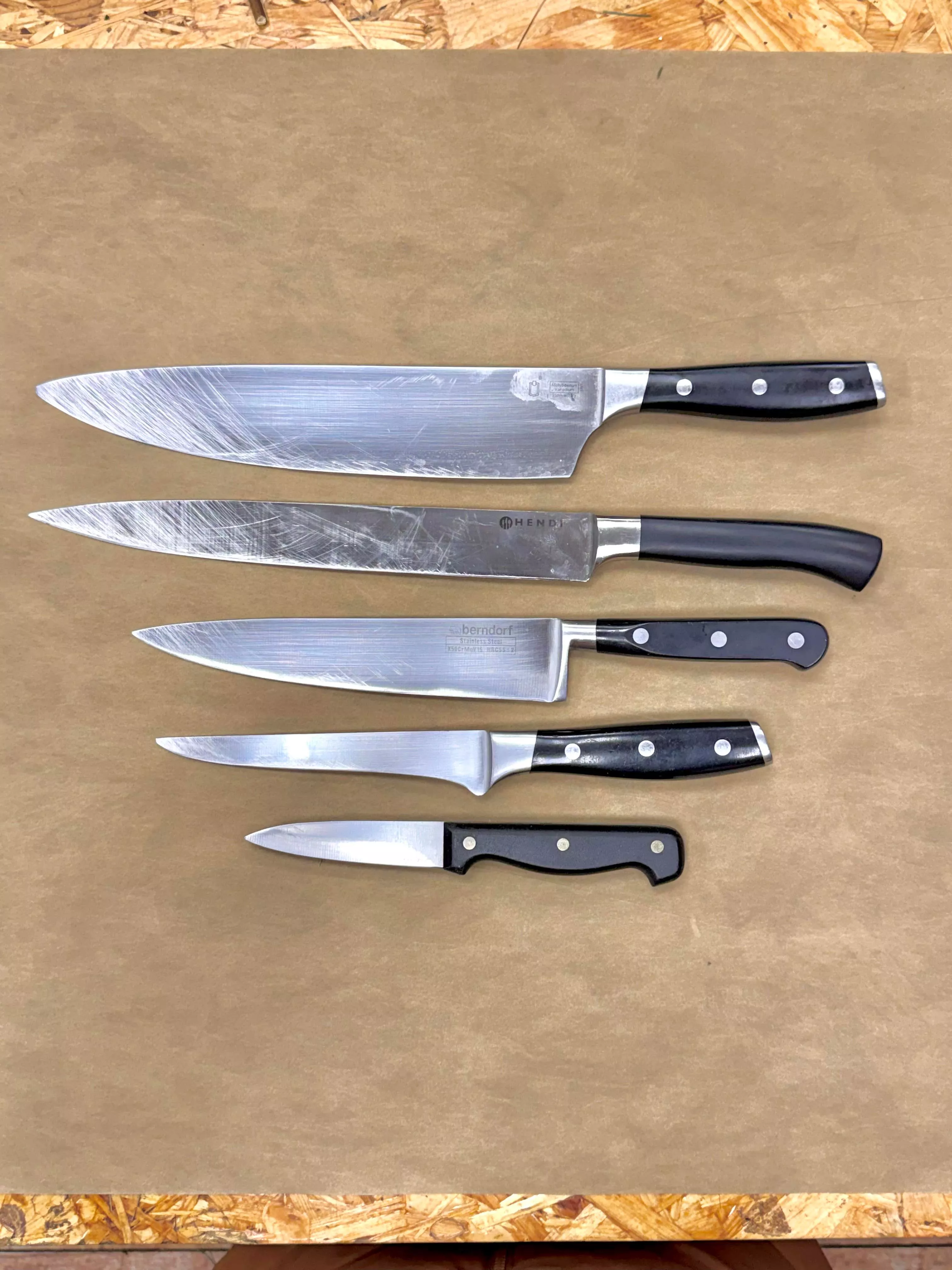 Na některých fotkách u nás najdete i nože a nástroje tak, jak nám je lidé nosí – často ještě před broušením. Po nabroušení je ostří vždy perfektní, proto nefotíme každý kus zvlášť. Výsledek je u všech stejný: dokonale ostrý nůž připravený k práci.