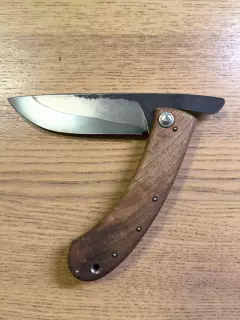Čepel není mechanicky fixovaná; v otevřené poloze ji drží právě prodloužený řap opřený o rukojeť. Je to tradiční konstrukce používaná u původních sedláckých nožů rozšířených po českých krajích.